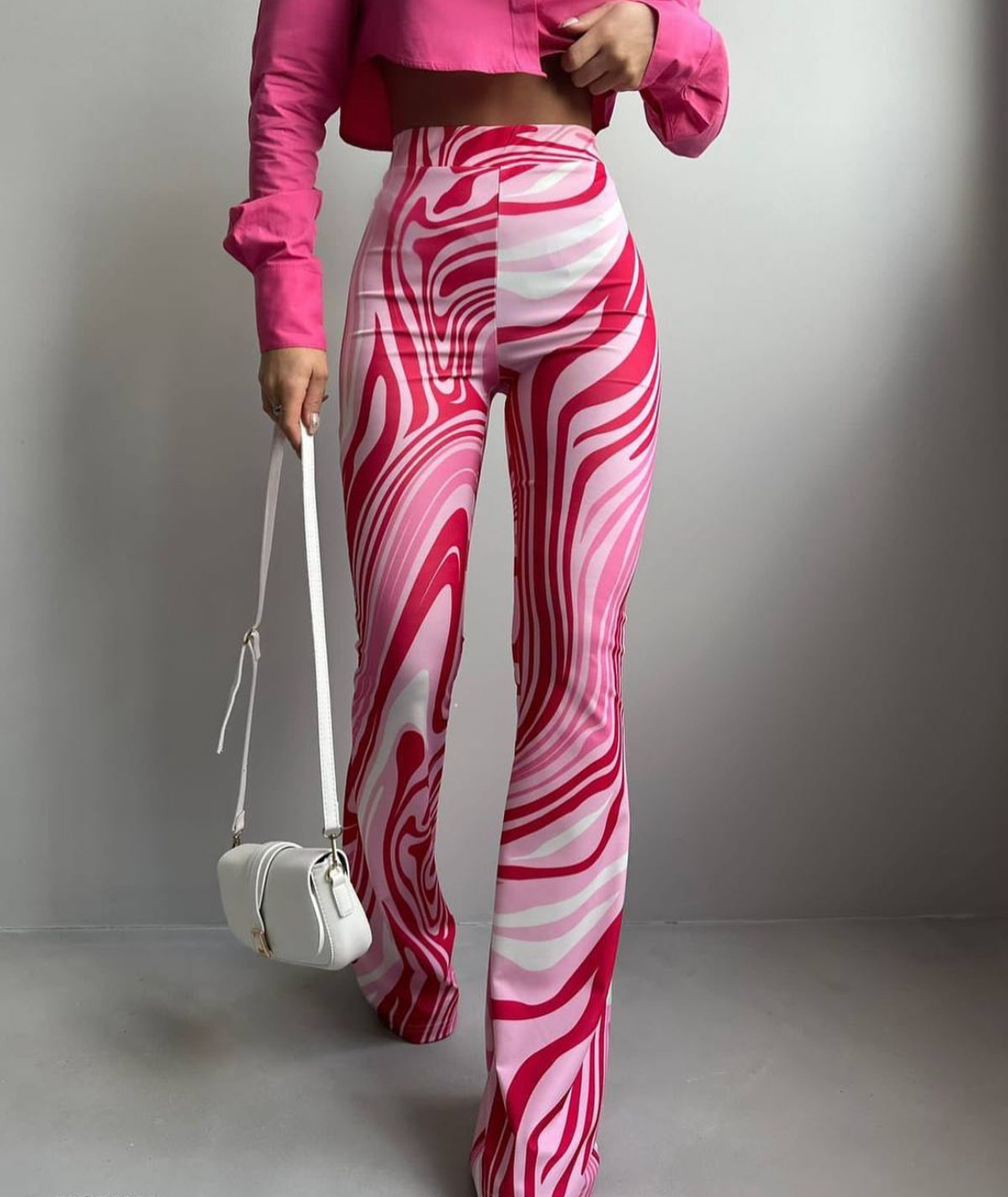 Step into bold style with our Swirl pants — where retro vibes meet modern glam. Featuring a hypnotic swirl pattern in vibrant shades of pink and white, these high-waisted flares hug your curves and bring instant energy to any outfit. Whether you’re hitting the streets or owning the dance floor, Swirl makes sure all eyes are on you.
